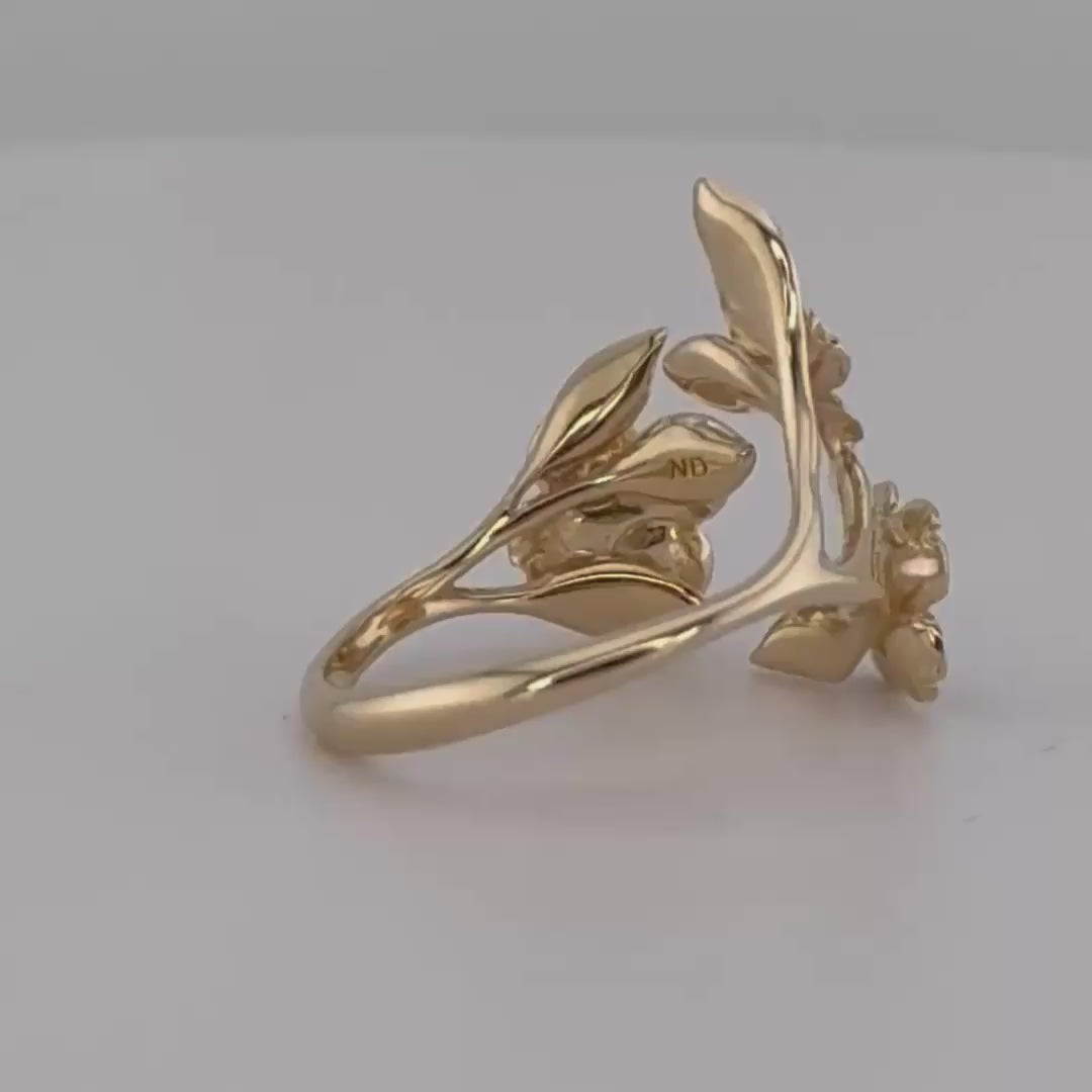Bronze Dogwood Flower and Leaf Adjustable Ring