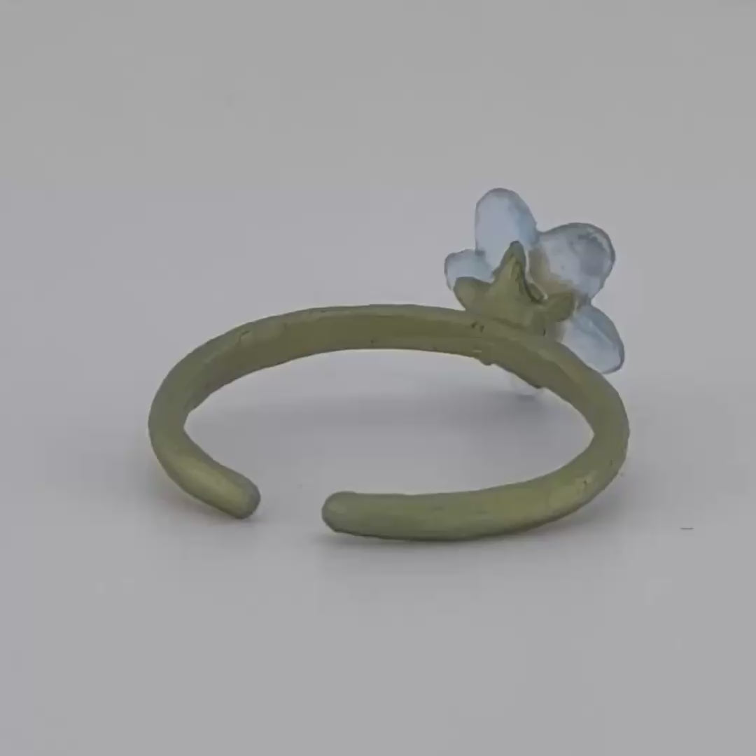 The Forget Me Not may be small, but its meaning runs deep. With its delicate blue petals and centuries-old symbolism of enduring love and memory, this flower has inspired poems, myths, and romantic legends — including a tale of a lover swept away by a river, calling out "Forget me not!" as he disappeared. In this ring, that sentiment becomes something you can wear close.