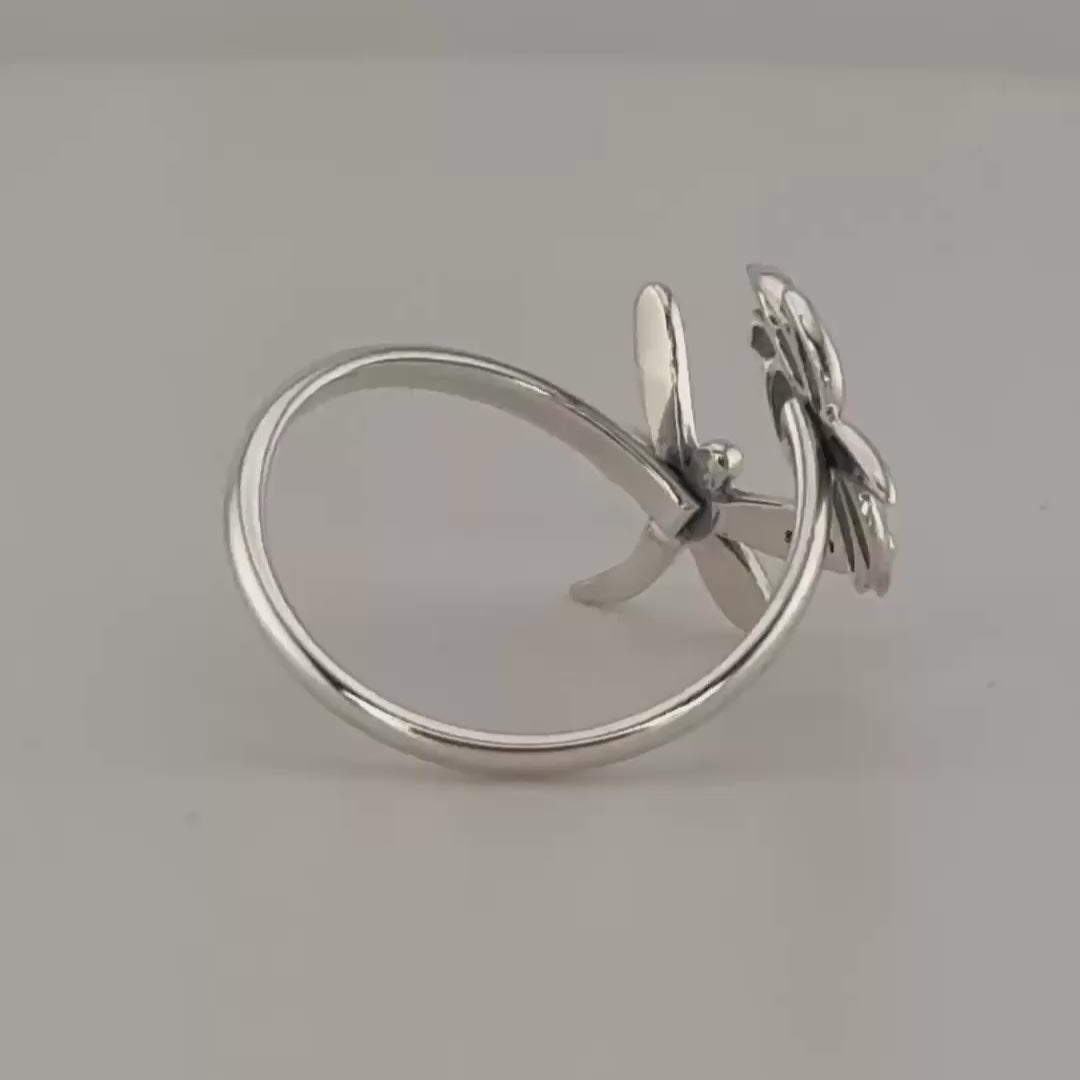 Recycled Sterling Silver Dragonfly and Lotus Adjustable Ring ♻️
