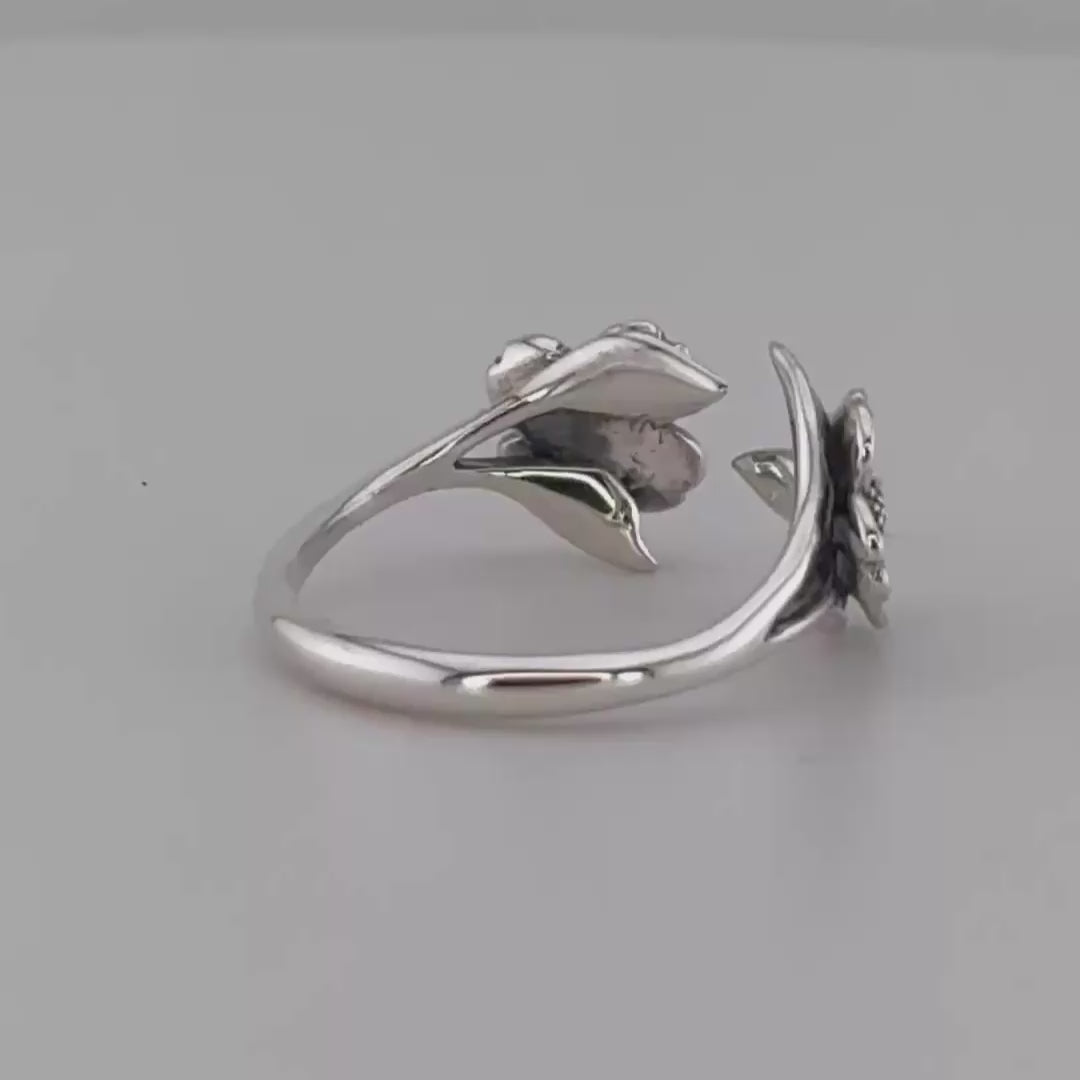 Sterling Silver Two Flower Dogwood Adjustable Ring